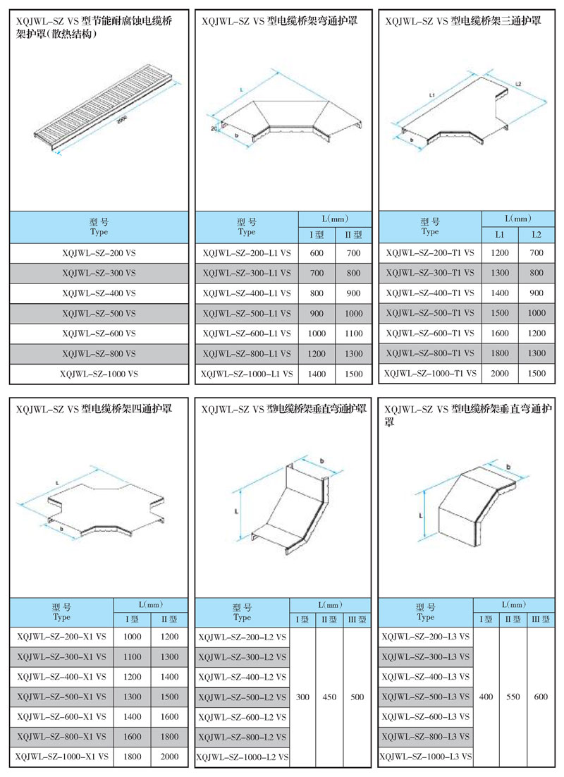 XQJWL-SZ VS 型節(jié)能耐腐蝕電纜橋架護(hù)罩(散熱結(jié)構(gòu))、 XQJWL-SZ VS 型電纜橋架彎通護(hù)罩、 XQJWL-SZ VS 型電纜橋架三通護(hù)罩、 XQJWL-SZ VS 型電纜橋架四通護(hù)罩、 XQJWL-SZ VS 型電纜橋架垂直上彎通護(hù)罩、 XQJWL-SZ VS 型電纜橋架垂直下彎通護(hù)罩各系列型號(hào)參數(shù):