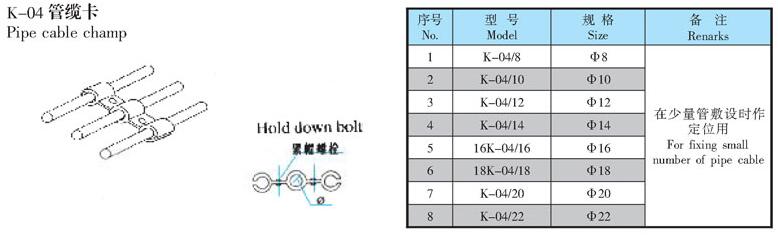 本文將會在K-04管纜卡的型號、用途、規格、重量等方面做詳細的說明與介紹,江蘇海馳電氣制造有限公司作為是專業的K-04管纜卡生產廠家,為您選購適合自己的產品做一定的指導是必要的。