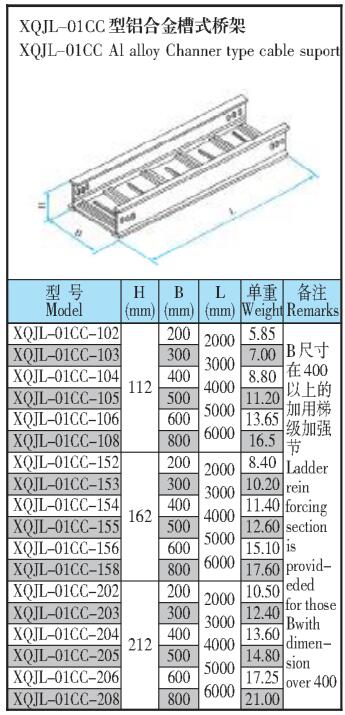 本文將會在XQJL-01CC型鋁合金槽式橋架的型號、用途、規格、重量等方面做詳細的說明與介紹,江蘇海馳電氣制造有限公司作為是專業的XQJL-01CC型鋁合金槽式橋架生產廠家,為您選購適合自己的產品做一定的指導是必要的。