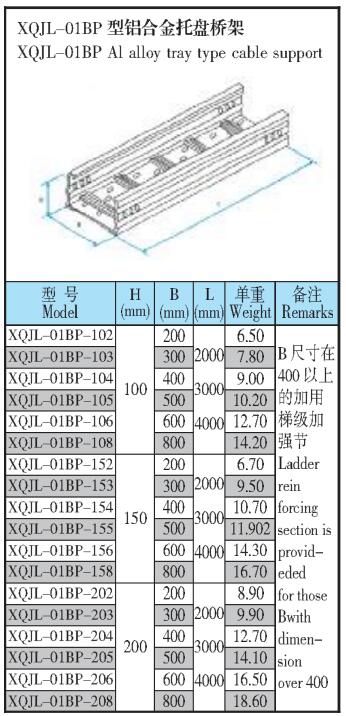 本文將會在XQJL-01BP型鋁合金托盤橋架的型號、用途、規格、重量等方面做詳細的說明與介紹,江蘇海馳電氣制造有限公司作為是專業的XQJL-01BP型鋁合金托盤橋架生產廠家,為您選購適合自己的產品做一定的指導是必要的。