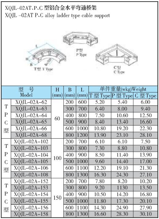 XQJL-02AT、P、C型鋁合金水平彎通橋架