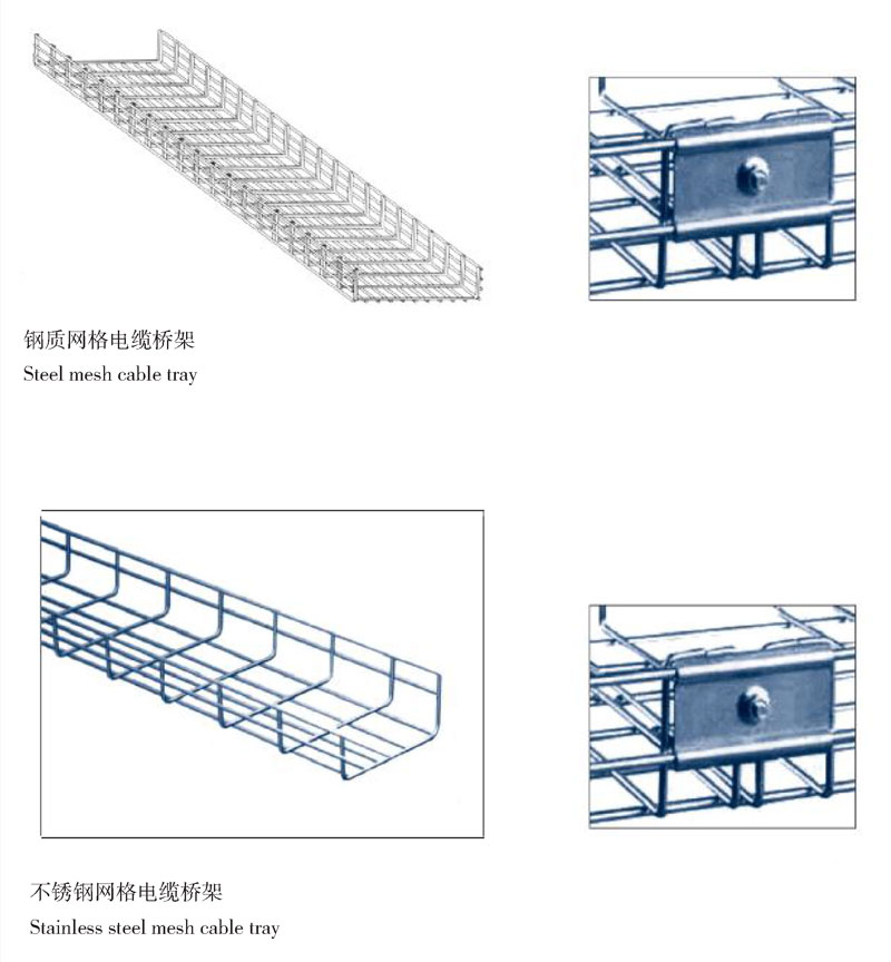 鋼網式電纜橋架,主要采用優質鋼絲精制而成,具有結構新額、安裝輕巧、連接方便、載荷能力強、散熱快、耐腐蝕等優點,產品廣、泛應用于療油、化工、電力、冶金、機械、醫藥、航空、航舶等領域,深受海內外設計和使用單位的好評。